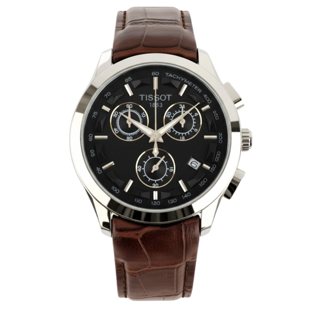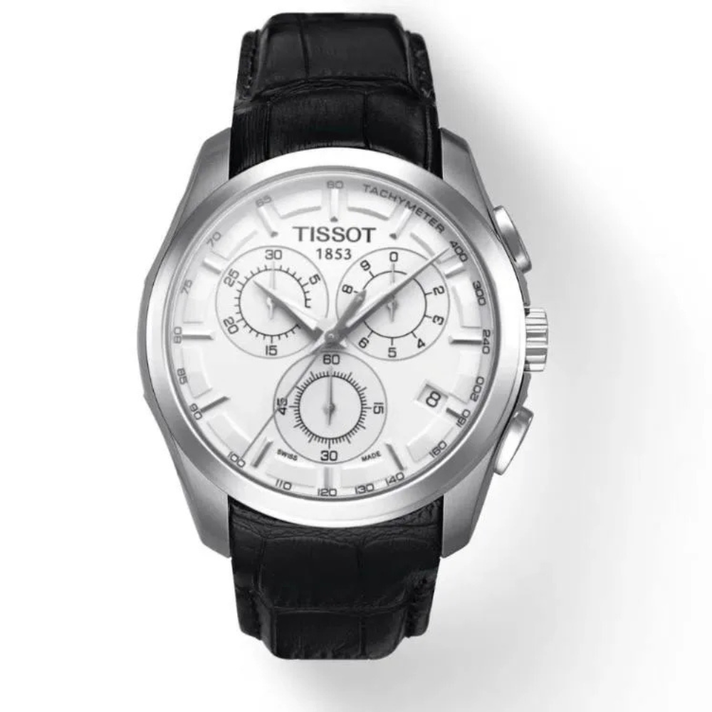 10.00 ر.سTissot – Black Leather Strap, White Dial